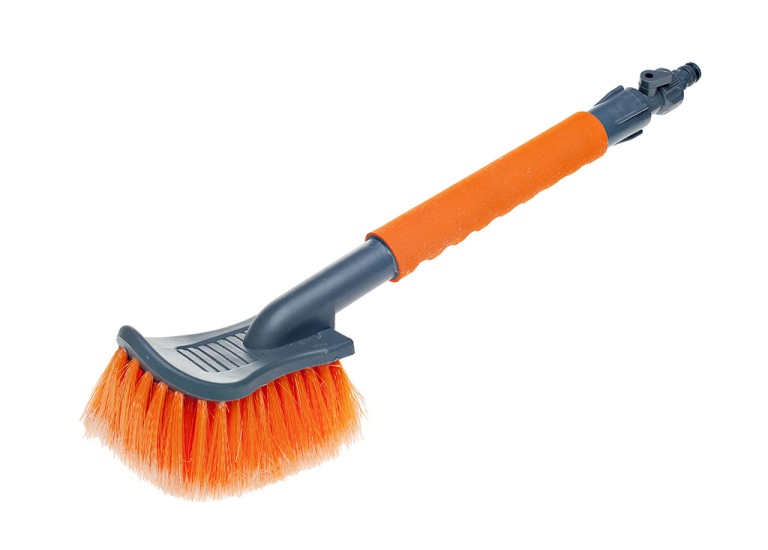 Щетка с мягкой распушенной щетиной и насадкой для шланга , Особо мягкая распушенная щетина для бережной мойки. Щетина из высокоупругого полимера для длительной эксплуатации. Прочный корпус, рукоятка с мягким эргономичным нескользящим покрытием. Длина 40 см