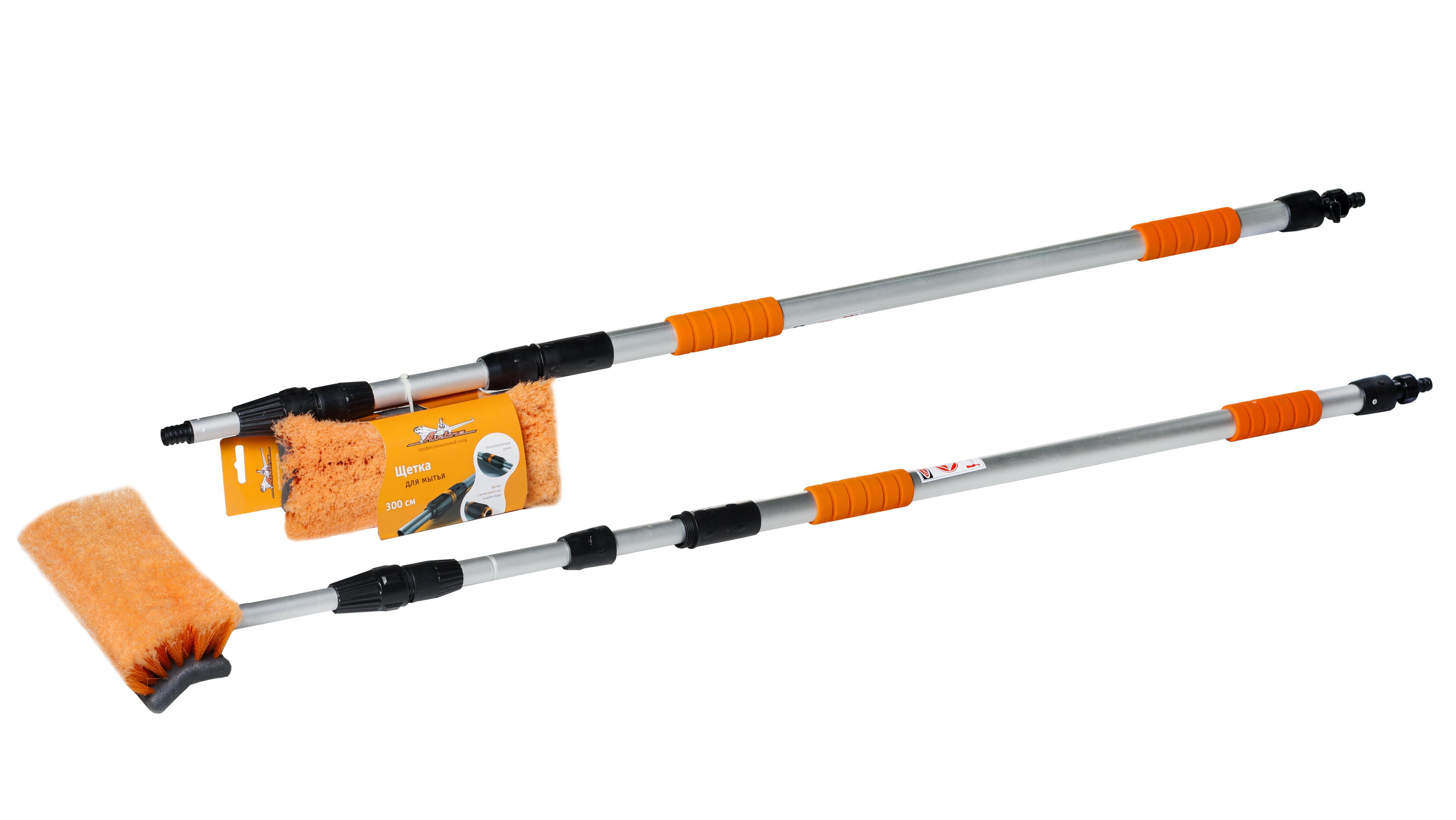 Швабра с насадкой для шланга, щеткой 25 см и телескопической ручкой 300 см