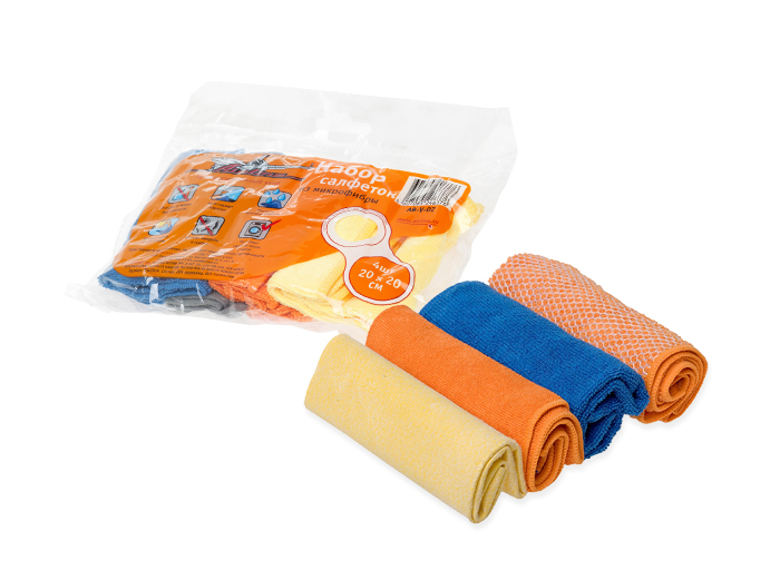 Набор салфеток из микрофибры в рулончиках 4 шт. 20х20 см.