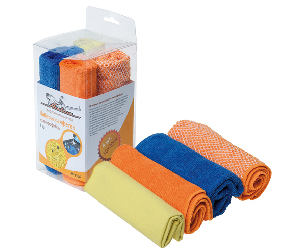 Набор салфеток из микрофибры и искусственной замши в блистере 4 шт. (30х30 см)