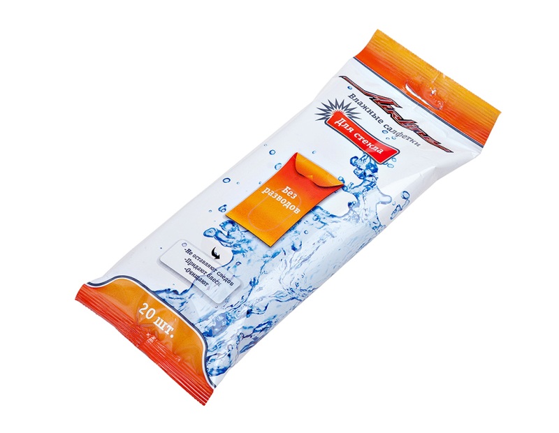 Влажные салфетки для стеклянных поверхностей , Для стекол — отлично очищают стекла от различных видов загрязнений, не оставляют разводов, придают блеск окнам, зеркалам и другим стеклянным поверхностям, обладают антистатическим эффектом, - 20 шт.