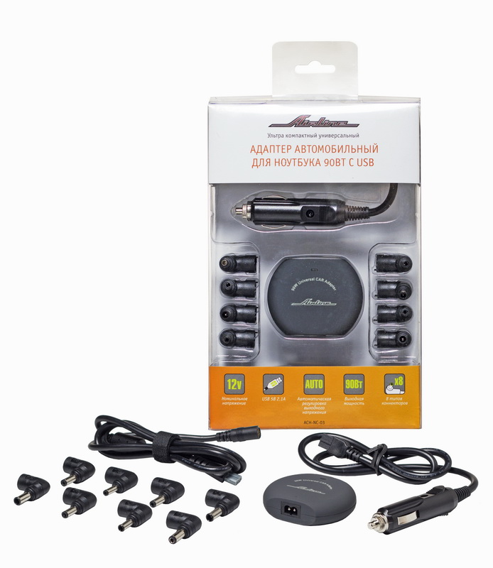 Адаптер автомобильный для ноутбука универсальный 90Вт с USB (ультра компактный)