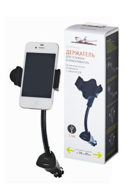 Держатель Функционал для телефона в прикуриватель на длинной штанге раздвижной с зарядкой USB