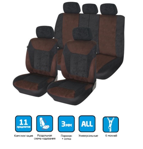 Раздельная схема надевания и 6 молний для разделения чехла заднего ряда обеспечит удобную и простую установку чехлов.