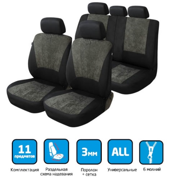 Универсальные чехлы с бархатной приятной поверхностью придают уют салону автомобиля. Цвета и дизайн отлично подходят для любого автомобиля. Велюр после стирки не выцветает и не дает усадку. При правильном уходе такие чехлы прослужат очень долго.