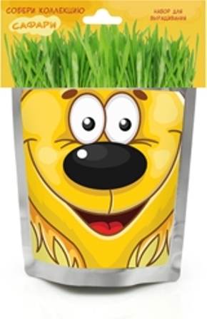 В наборах серии САФАРИ - овес, который вырастает очень быстро, травка получается плотная, густая, зеленая, красивая уже через 3 дня. Детям очень нравится делать прическу своему зеленому питомцу: травку можно подстригать ножницами, создавать разные формы, можно завязывать резинками "хвостики", можно даже заплетать зеленые косички!