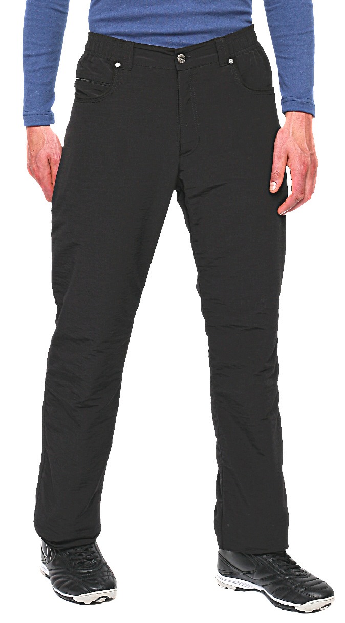 Зимние брюки с гульфиком на молнии. Пояс полужёсткий с резинками по бокам. Брючины немного заужены книзу. Передние карманы полукруглые джинсовые утеплены флисом, задние - прорезные на молниях. Часовой карман на молнии. Все карманы усилены хольнитенами. Широкие шлёвки. Боковой шов двойной. Задняя кокетка отстрочена тройным швом. Три размерных ряда.