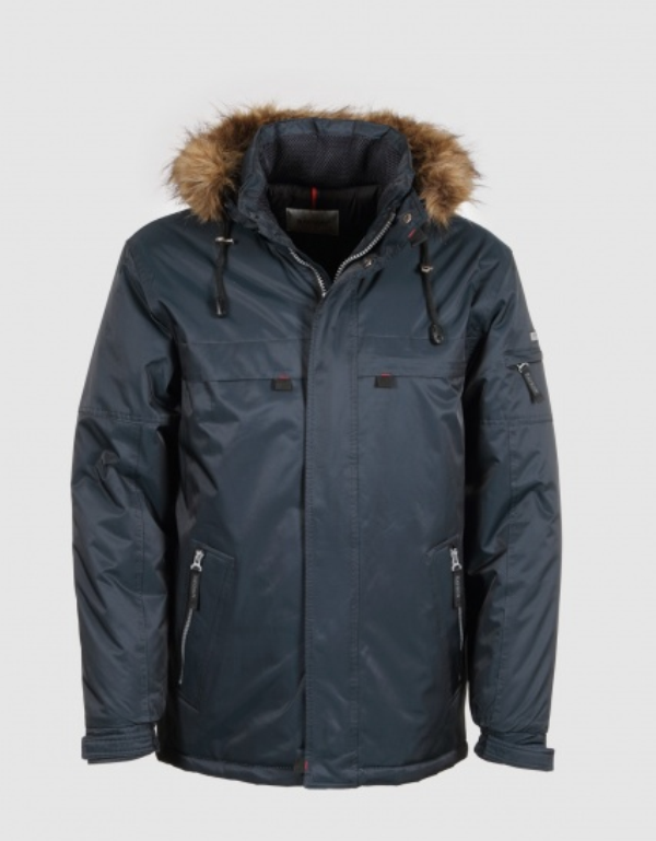 Куртка мужская 56102/B-AF, шесть наружных карманов, два внутренних кармана на молниях, отстегивающийся капюшон с опушкой из искусственного меха енота, мех отстёгивается от капюшона, регулируемая кулиса по низу куртки, регулируемый теплоудерживающий манжет на рукаве.