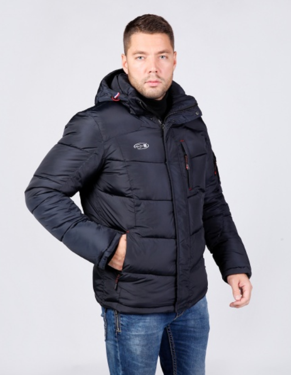 Куртка мужская 57171. Четыре наружных кармана на молниях, четыре внутренних кармана, в том числе карман для телефона, отстегивающийся капюшон, трикотажный теплоудерживающий манжет в рукаве. Состав: Верх 100% - полиэстер; Подкладка 100% - нейлон; Наполнитель 100% - полиэстер (холлофайбер) 800 гр./м2.