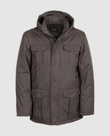 Восемь наружных карманов, в том числе два боковых кармана на магнитной застежке, два внутренних кармана, отстегивающийся капюшон, длина позволяет носить куртку с пиджаком.