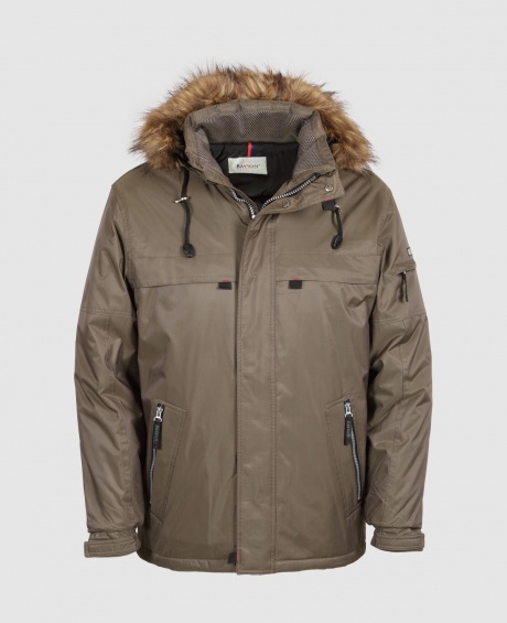 Шесть наружных карманов, два внутренних кармана на молниях, отстегивающийся капюшон с опушкой из искусственного меха енота, мех отстёгивается от капюшона, регулируемая кулиса по низу куртки, регулируемый теплоудерживающий манжет на рукаве.