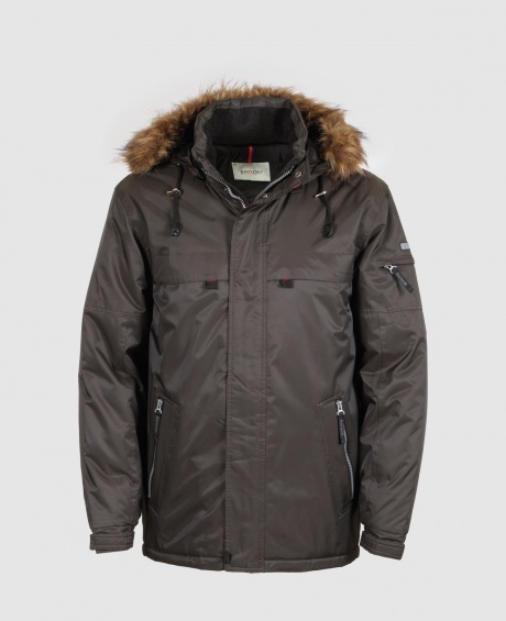 Куртка мужская 56102/B-AF, шесть наружных карманов, два внутренних кармана на молниях, отстегивающийся капюшон с опушкой из искусственного меха енота, мех отстёгивается от капюшона, регулируемая кулиса по низу куртки, регулируемый теплоудерживающий манжет на рукаве.
