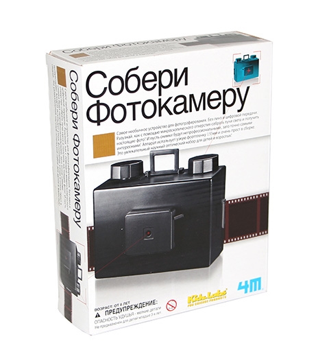 И все же он позволяет делать снимки в хорошем разрешении на пленке шириной 133 мм. И пусть снимки будут непрофессиональными, зато точно самыми интересными! В наборе ребенок найдет интересные факты о фотоаппаратах и узнает много интересного, например, как с помощью микроскопического отверстия собрать лучи света и получить настоящие фото.