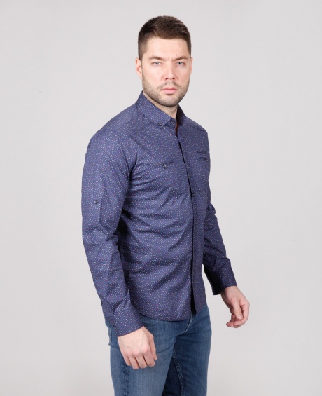 Мужская рубашка приталенный крой, два кармана, застегивается на пуговицы.