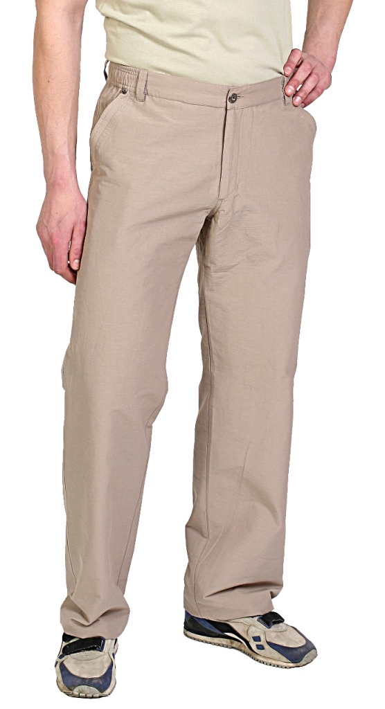 Летние брюки с гульфиком на молнии. Пояс полужёсткий с резинками по бокам. Брючины прямые. Передние карманы прямые брючные, задние - прорезные на молниях. Все карманы усилены хольнитенами. Боковой шов двойной. Задняя кокетка отстрочена тройным швом. Широкая цветовая гамма. Два размерных ряда.