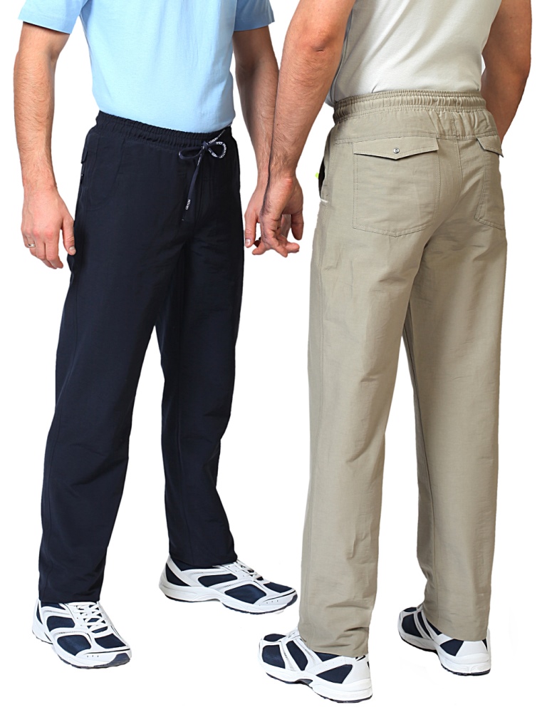 Летние брюки на резинке со шнурком в поясе. Брючины заужены книзу. Имитация гульфика. Передниекарманы полукруглые, задние - накладные 5-ти угольные, закрыты сверху 5-ти угольными клапанами на кнопках. Боковой шов двойной.
