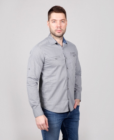 Мужская рубашка приталенный крой, два кармана, застегивается на пуговицы.