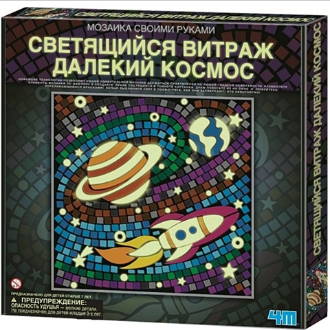 Наклейте панно на окно, чтобы солнечный свет проходил сквозь картинку и по стенам забегают веселые разноцветные блики. А когда наступит ночь, мозаика заиграет таинственным светом! Отправляйтесь в космическое путешествие с набором Светящийся витраж!