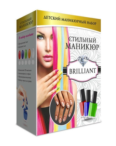 С помощью набора ребенок сможет научиться делать потрясающий маникюр. Высокое качество лака и декоративных элементов гарантирует прекрасный внешний вид ухоженных ногтей. Советы по нанесению лака представлены на упаковке.