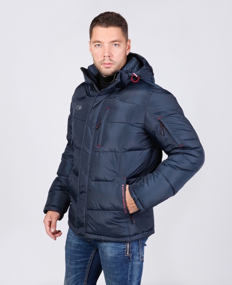 Куртка мужская 57171. Четыре наружных кармана на молниях, четыре внутренних кармана, в том числе карман для телефона, отстегивающийся капюшон, трикотажный теплоудерживающий манжет в рукаве. Состав: Верх 100% - полиэстер; Подкладка 100% - нейлон; Наполнитель 100% - полиэстер (холлофайбер) 800 гр./м2.