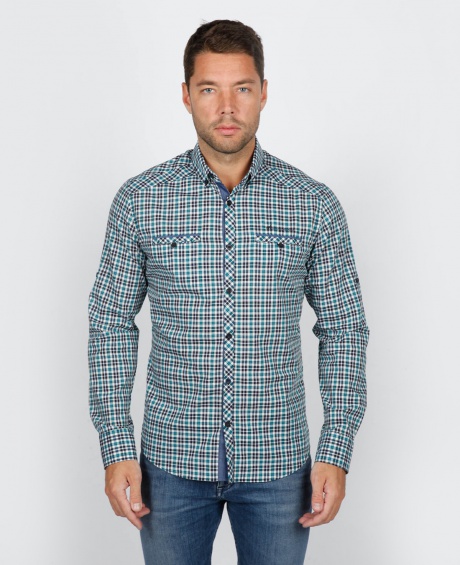 Мужская рубашка приталенный крой, два кармана, подворачивающиеся рукава roll-up.
