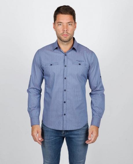 Мужская рубашка приталенный крой, два кармана, подворачивающиеся рукава roll-up.