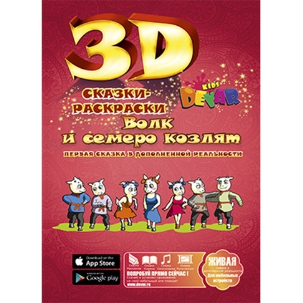 Раскраска "Волк и семеро козлят"- забавная сказка, которую все помнят с детства. Теперь это еще и необычная раскраска. Персонажи оживут, когда вы их раскрасите и запустите специальное приложение на смартфоне. Дети учатся усидчивости, логике, приобретают творческий вкус.
