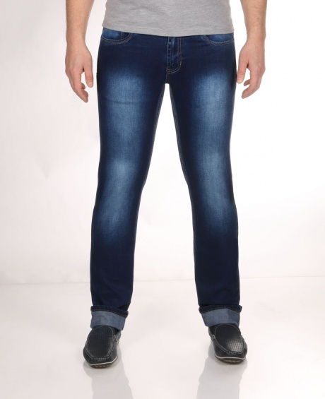 Мужские пяти карманные джинсы, слегка зауженные, с застежкой на молнию. Ткань с добавлением эластана обеспечивает комфортную посадку и сохранение формы.