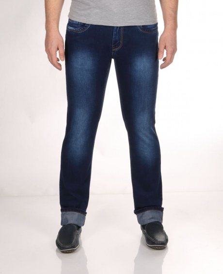Мужские пяти карманные джинсы, слегка зауженные, с застежкой на молнию. Ткань с добавлением эластана обеспечивает комфортную посадку и сохранение формы.
