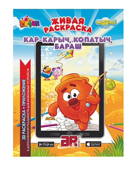 В живой раскраске <<Кар-Карыч, Копатыч, Бараш>> Смешарики будут рассказывать о себе, о своих увлечениях и мечтах. Можно заглянуть в гости к любимому герою и посмотреть, как он живет. Кар-Карыч впечатлит мастерством фехтования, Бараш попытается стать рыцарем, а Копатыч расскажет о секретах садоводства. А все вместе Смешарики устроят для читателя маленький сюрприз в живом исполнении.