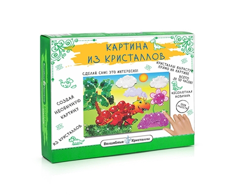 Создайте чудесную объемную картину из кристаллов! Маленькому динозаврику нужны эффектные шипы, а мир вокруг него нуждается в ярких красках. С помощью набора для выращивания кристаллов <<Динозавры>> вы сможете провести настоящий эксперимент и вырастить кристаллы прямо на картонной основе. Вы увидите, как всего за несколько часов простая картинка преобразится до неузнаваемости.