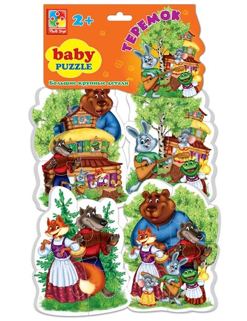 Каждая картинка разделена на 4-5 элементов. Герои сказок веселые, доброжелательные и хорошо узнаваемые детьми.