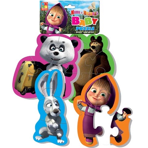 Каждая картинка разделена на 4-5 элементов. Герои сказок веселые, доброжелательные и хорошо узнаваемые детьми.