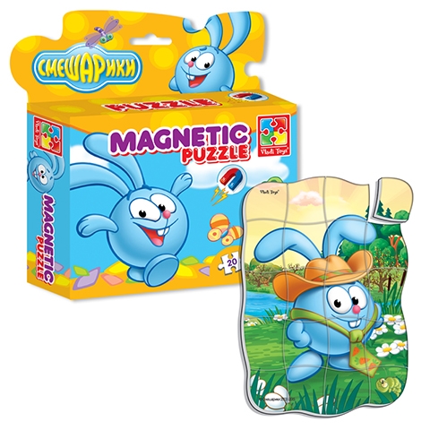 Магнитные пазлы разделены на 20 деталей, которые ребенок может самостоятельно собрать в картинку.
