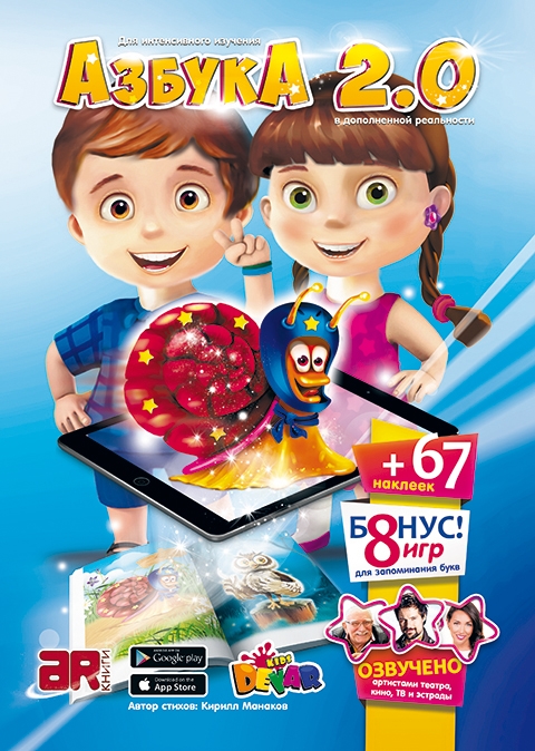 Скачайте бесплатное приложение, активируйте его с помощью кода и наведите камеру мобильного устройства на страницу книги. Герои азбуки оживут и заговорят голосами российских звезд: певцов и певиц, актеров театра и кино. Армен Джигарханян, Алсу, Полина Гагарина, Гоша Куценко, Леонид Агутин, Геннадий Хазанов - это лишь малая часть из длинного списка артистов, поучаствовавших в создании этой книги. Звезды прочтут стихи, а анимационные герои покажут забавные сценки прямо на вашем столе. Ребенку понравится учить буквы!
