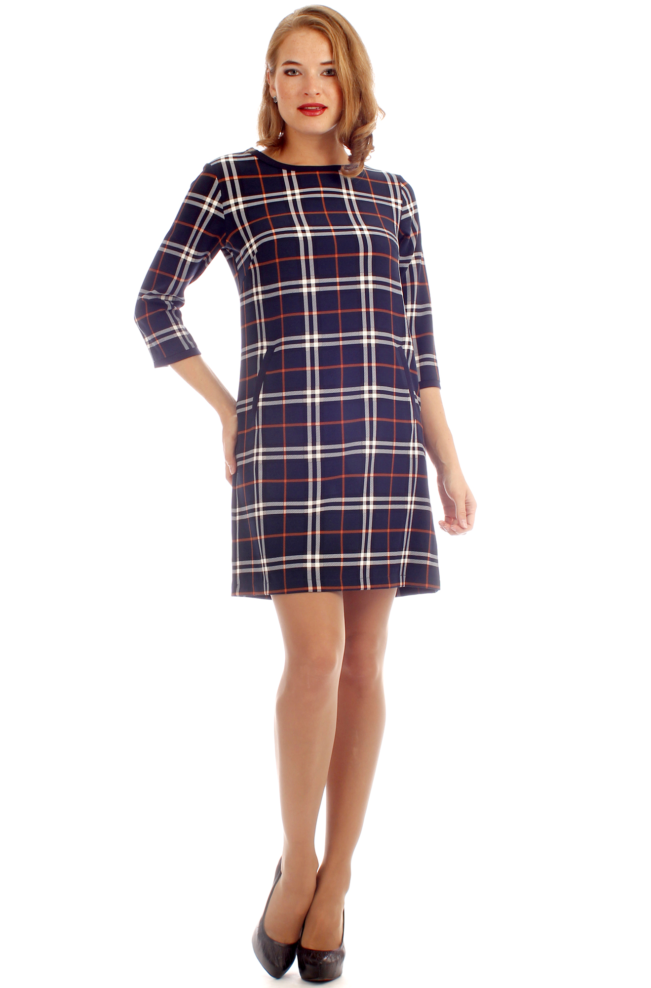 Платье прямого силуэта из ткани в клетку. Два кармана с однотонной отделкой вместят много мелочей. Линия плеча немного спущена. Рукав три четверти. Платье без подкладки. Клетки по боковому шву могут не совпадать.