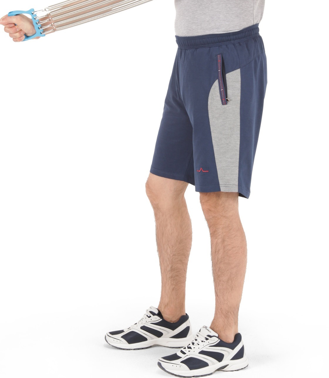 Спортивные трикотажные шорты с поясом на резинке. Длина - по колено. Для дополнительной фиксации с внутренней стороны в пояс вставлен шнурок . По бокам фигурные вставки контрастного цвета. Псевдогульфик. Передние карманы на молниях под листочками, отстроченными цветными нитками. С левой стороны цветная вышивка. Два размерных ряда.