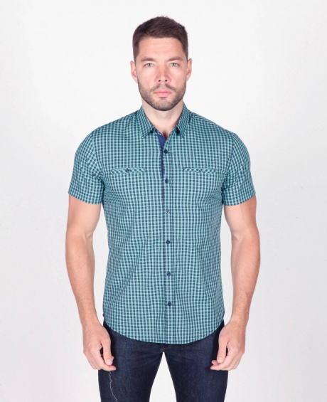 Мужская рубашка приталенный крой, два кармана застёгивается на пуговицы.