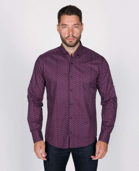 Мужская рубашка приталенный крой, подворачивающийся рукав roll-up, застёгивается на пуговицу.