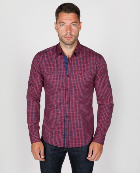 Мужская рубашка приталенный крой, два кармана, подворачивающийся рукав roll-up, застёгивается на пуговицу.