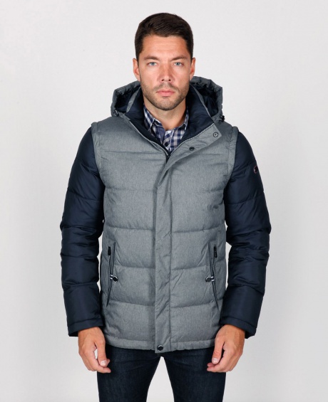 Четыре наружных боковых кармана (два на молниях, два на клепках), два внутренних кармана на молниях, отстегивающийся капюшон, регулируемая кулиса по низу куртки, трикотажный теплоудерживающий манжет в рукаве, отстёгивающиеся рукава на молнии - возможность носить как жилетку.