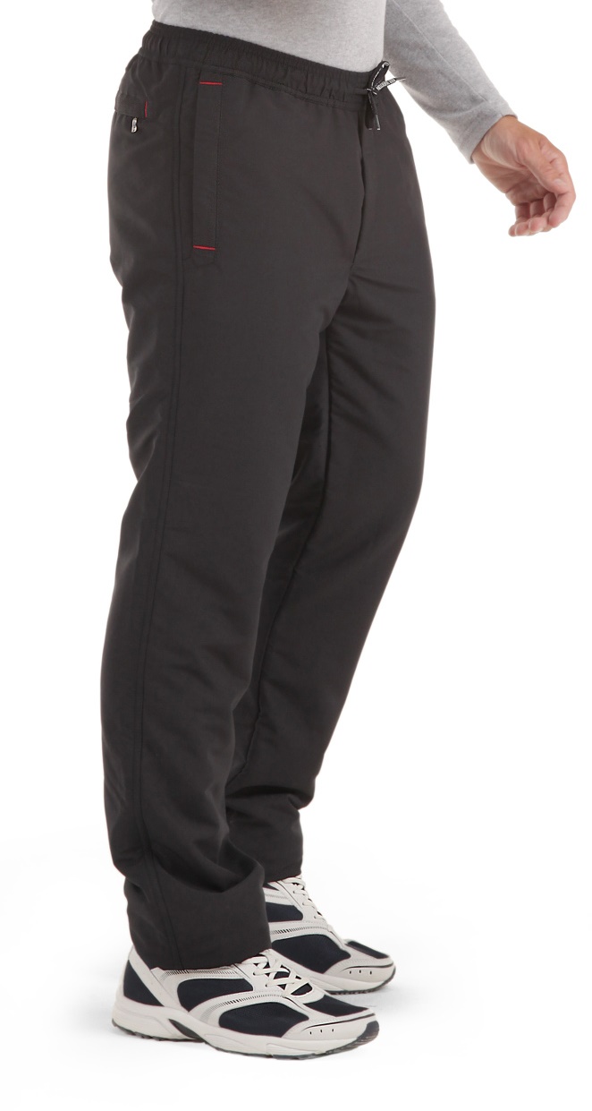 Зимние брюки с поясом на резинке. Пояс фиксируется шнурком с наименованием торговой марки. Брючины заужены книзу. Имитация гульфика. Передние карманы на молниях под листочками. Задний карман с правой стороны также на молнии под листочкой. Сзади слева имитация кармана. По краям листочек закрепки, выполненные цветными нитками. Под левым карманом 2-х цветная вышивка в фирменном стиле.