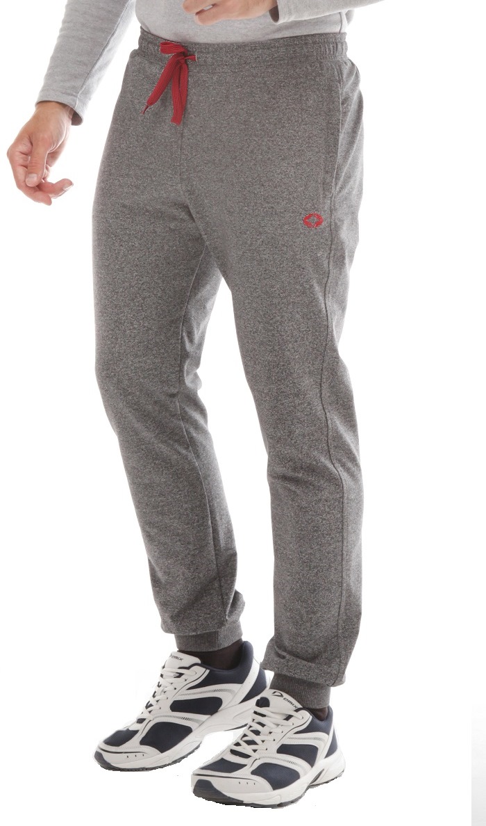 Трикотажные брюки с поясом на резинке. Пояс 2-х цветный: внутренняя сторона выполнена из кулирки гранатового цвета. Для дополнительной фиксации в пояс с наружной стороны вставлен шнурок в цвете гранат. Брючины заужены книзу и заканчиваются манжетами. Передние карманы на молниях под листочками. Молнии гранатовые в цвет отделки пояса. Под левым карманом вышивка в цвет отделки.