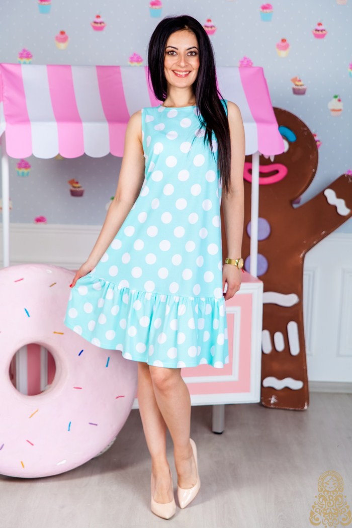 Кулирка с лайкрой (94% хлопок, 6% лайкра) / Длина изделия по спинке для 50 размера около 98 см. / Легкое платье-трапеция без рукавов, по низу изделия широкий волан со сборкой.