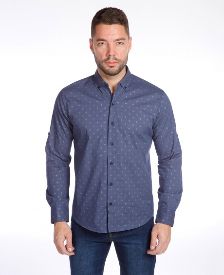 Мужская рубашка приталенный крой, подворачивающийся рукав roll-up, застёгивается на пуговицу.