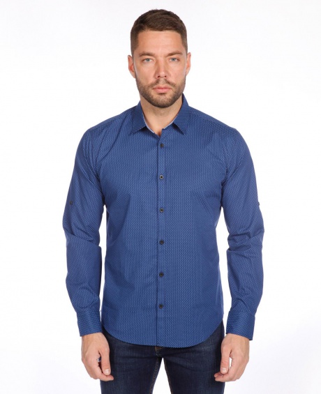 Мужская рубашка приталенный крой, подворачивающийся рукав roll-up, застёгивается на пуговицу.