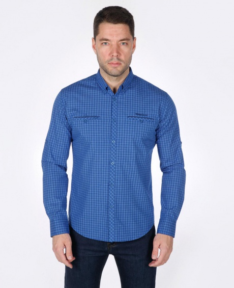 Мужская рубашка приталенный крой, подворачивающийся рукав roll-up, застёгивается на пуговицу.