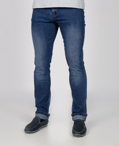 Молодежные пятикарманные джинсы зауженного кроя, с застежкой на молнию.