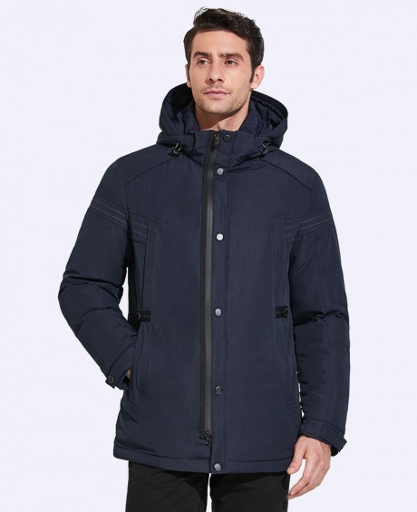 Четыре наружных кармана на молниях, два внутренних кармана на молниях, воротник с внутренней стороны отделан флисовым материалом, отстегивающийся капюшон, регулируемая кулиса по низу куртки, регулируемые по ширине манжеты на рукавах, трикотажный теплоудерживающий манжет в рукаве.