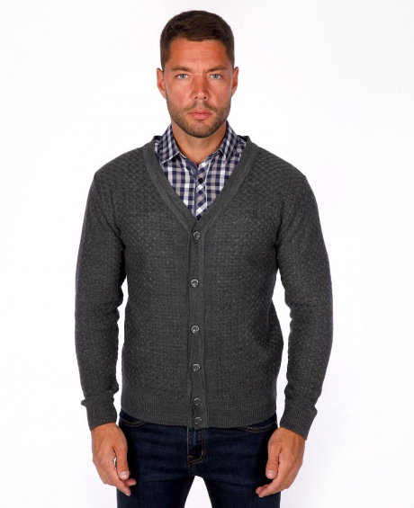 Мужской кардиган, машинного вязания, застегивается на пуговицы.